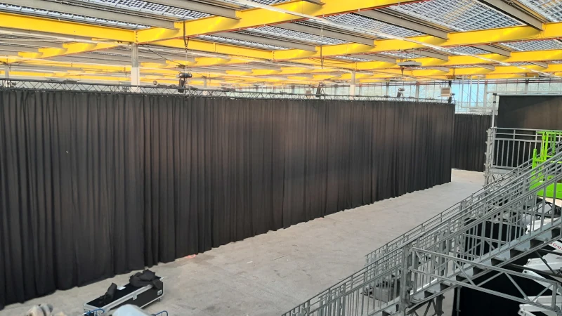 Onze molton doeken worden opgehangen via ons Pipe & Drape systeem of aan trussen.