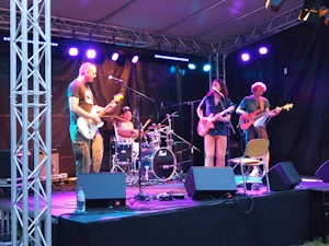 Omdat deze overkapping uit Prolyte trussen bestaat is deze uitermate geschikt voor het inhangen van geluid en verlichting.
